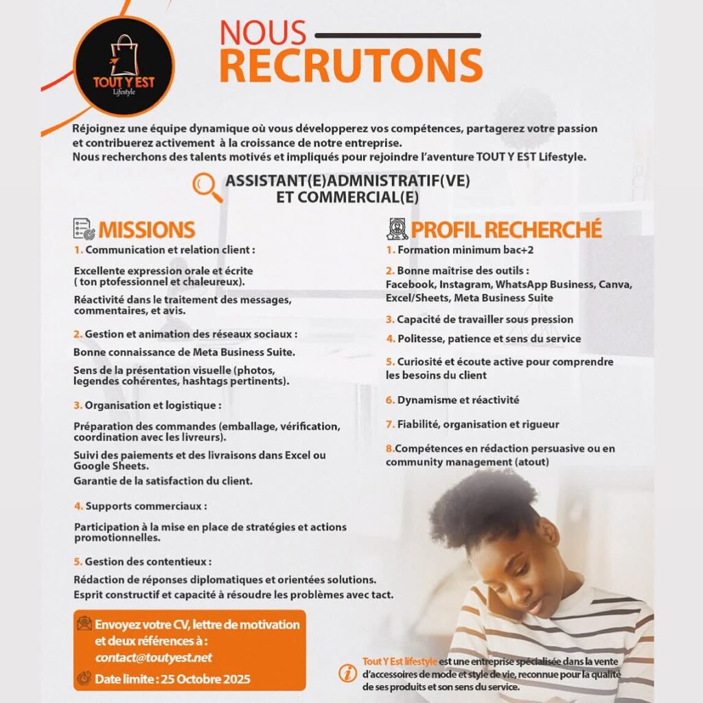 Intitulé du poste | Assistant (e) Administratif (ve) et commercial (e) |