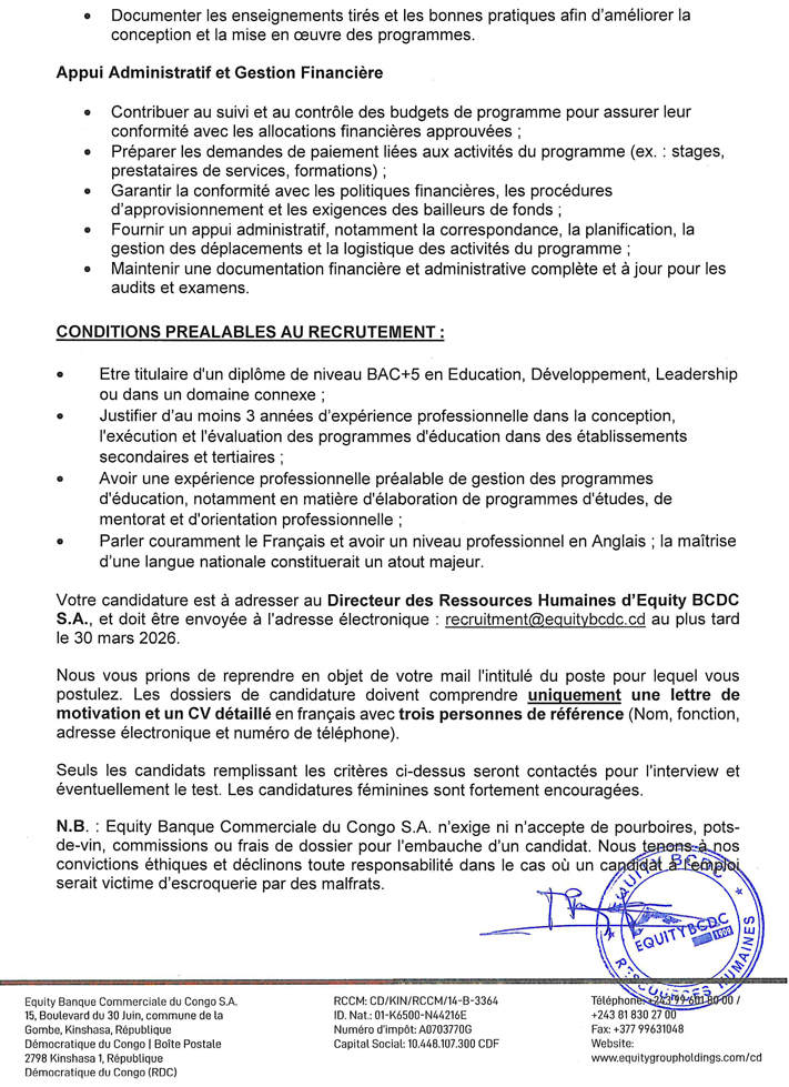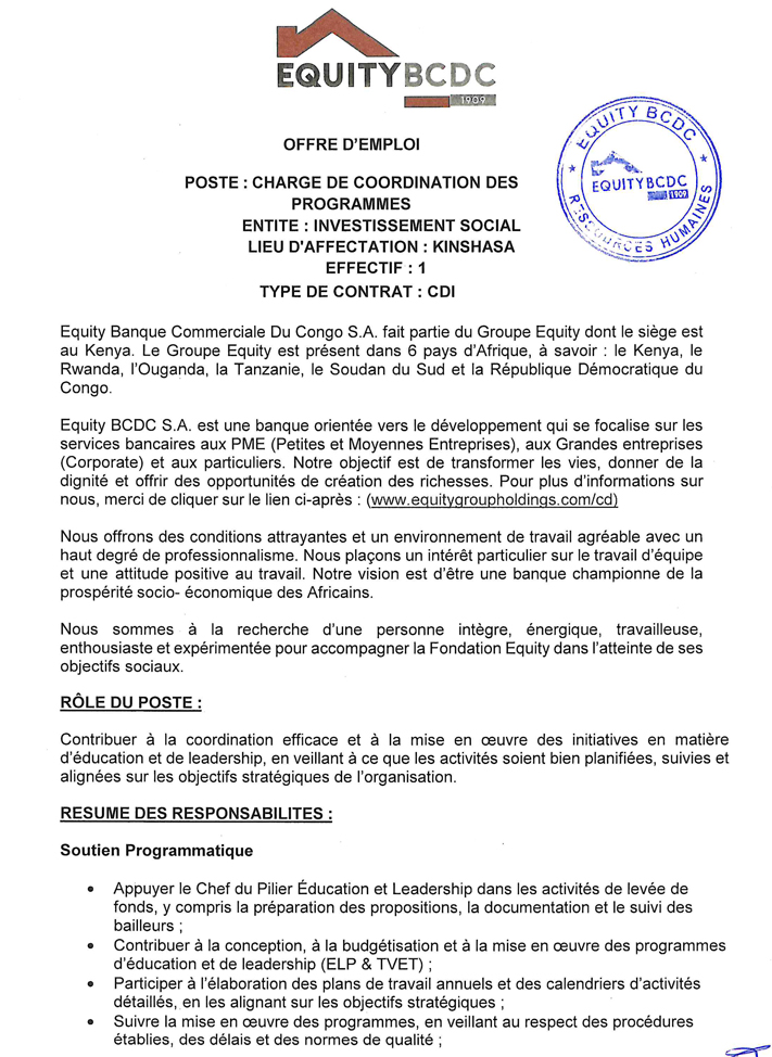 | l’adresse email pour postuler | recruitment@equitybcdc.cd |