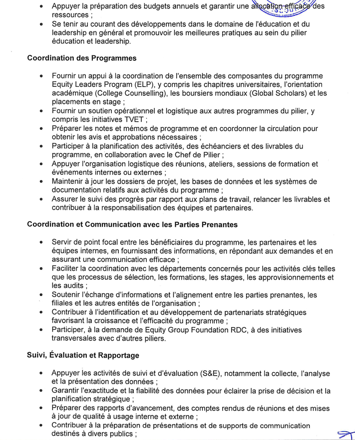 | Intitulé du poste | CHARGE DE COORDINATION DES PROGRAMMES | |