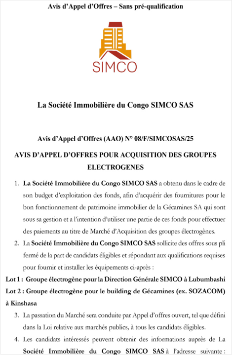 | Adresse email pour soumissionner | ericklwamba@gmail.com |