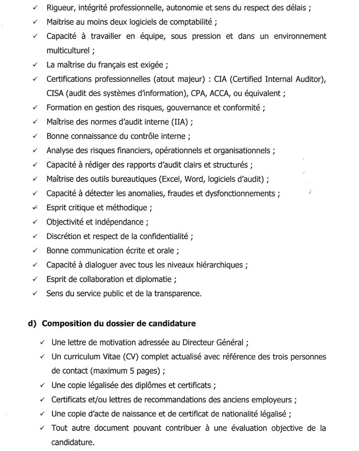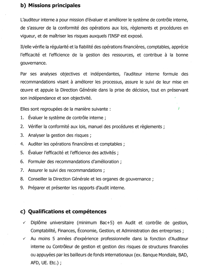 | Intitulé du poste | AUDITEUR INTERNE | |
