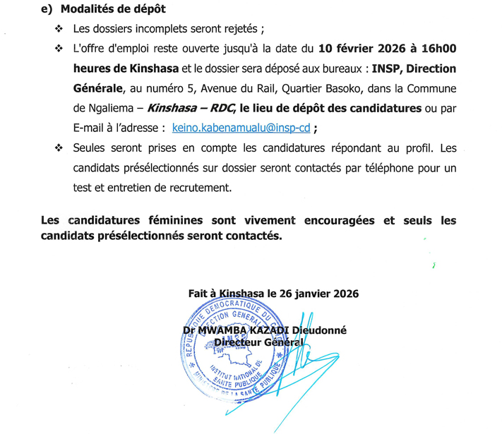 | l’adresse email pour postuler | keino.kabenamualu@insp-cd |