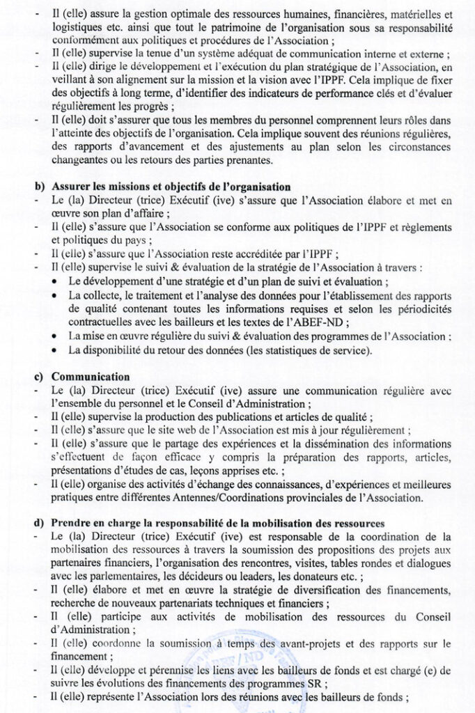 | Intitulé du poste | DIRECTEUR(TRICE) EXECUTIF(VE) | |