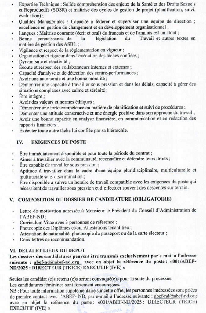 | l’adresse email pour postuler | Abef-nd@abef-nd.org |