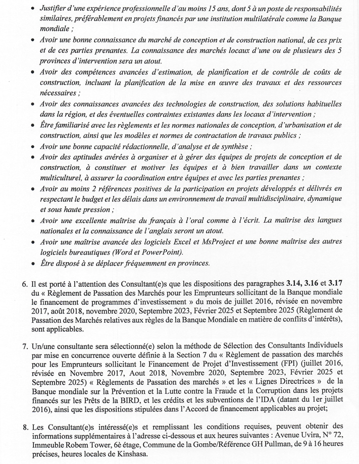 | Intitulé du poste | SPECIALISTE EN GENIE CIVIL | |