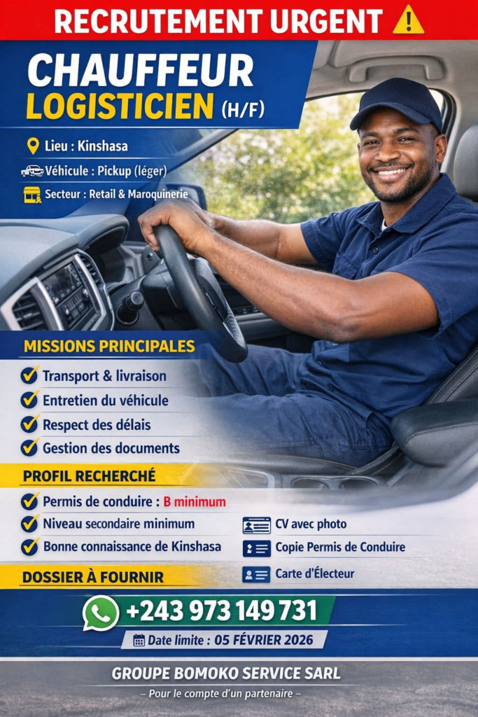 | Intitulé du poste | Chauffeur Logisticien (H/F) |