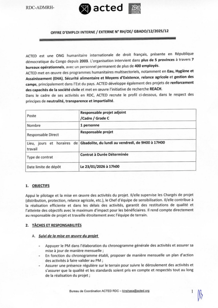 NUMERO DE REFERENCE : RH/OE/KIN/1/2025/01