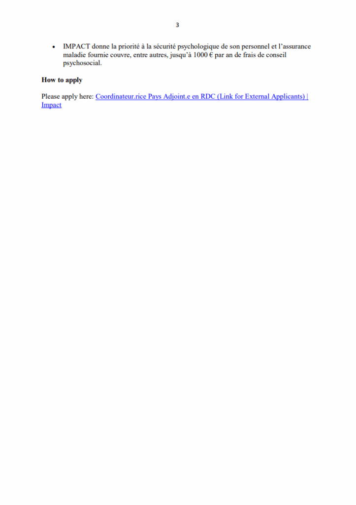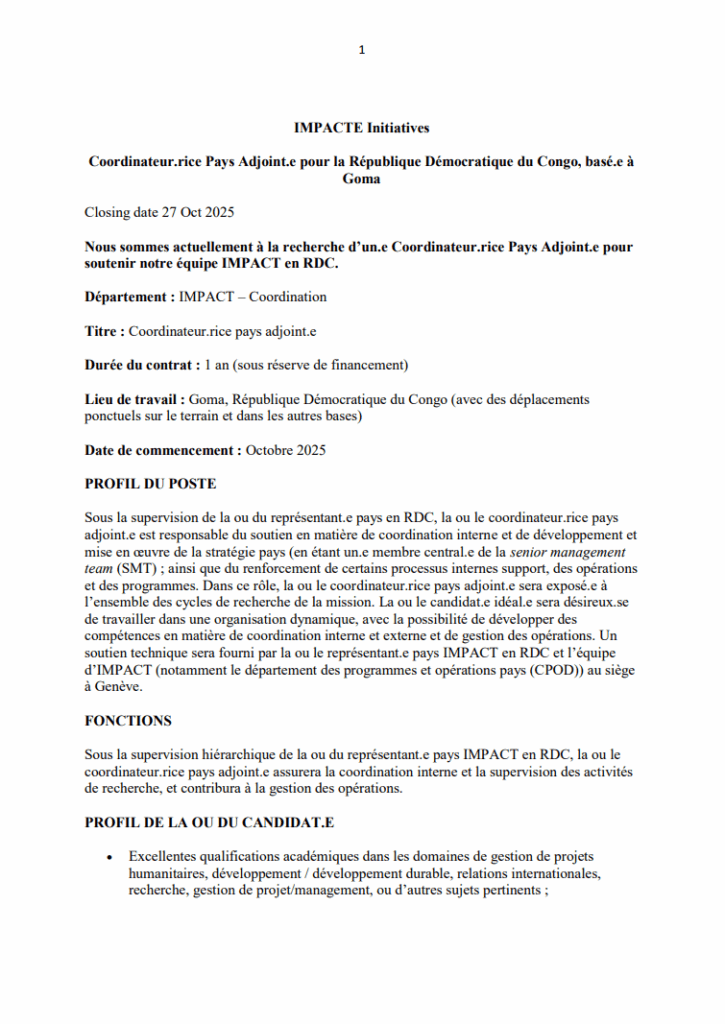Intitulé du poste | Coordinateur.rice pays adjoint.e |