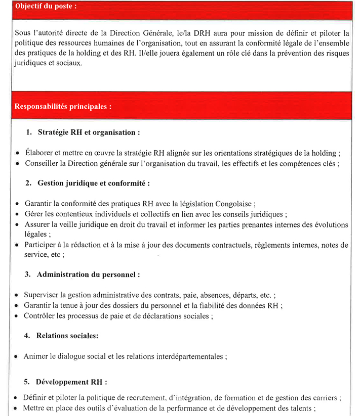 | Intitulé du poste | DIRECTEUR(TRICE) DES RESSOURCES HUMAINES | |